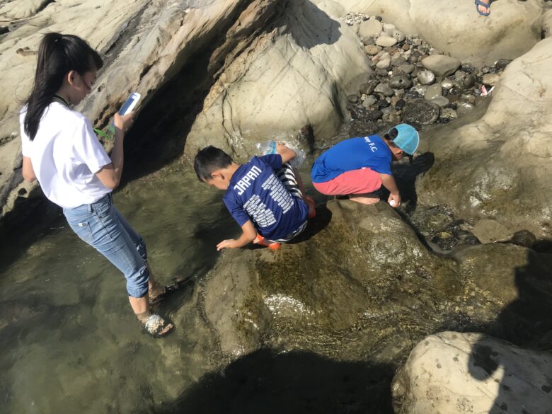 海でお宝拾いチーム、探検チーム、自由研究チームは海へ。