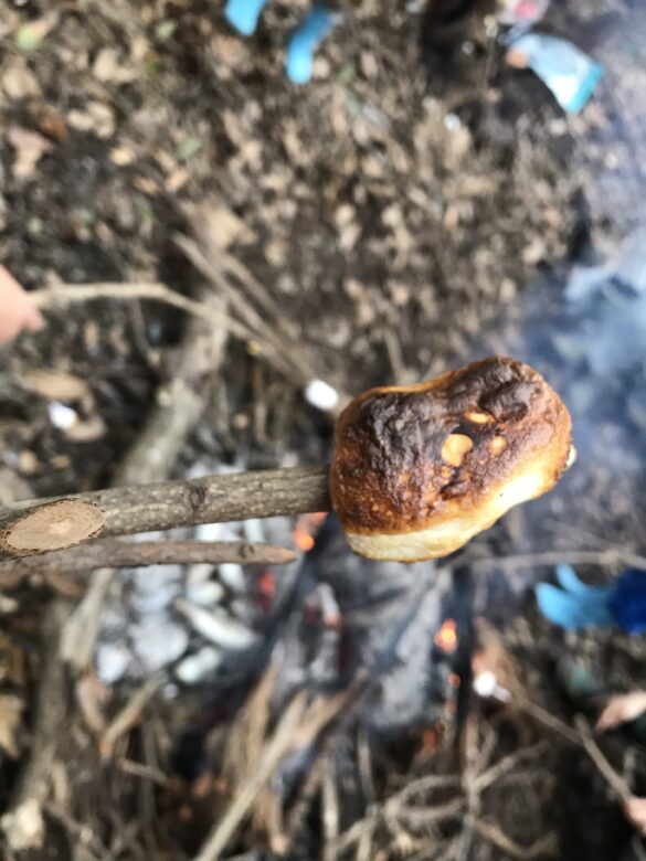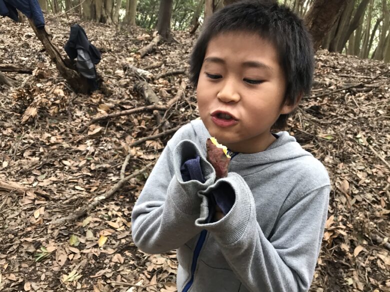 焼き芋食べて、マシュマロ焼いて。最後の裏山あそびを満喫しました。
