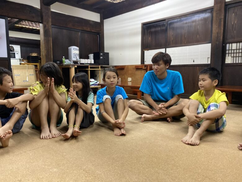 21:00無事到着しました。今日から、ゆとりの10人のキャンプです。自己紹介をして、お風呂に入って、今夜はゆっくり寝て、明日は近くは無いけど、楽しくてスリリングな川へあそびに行きます。