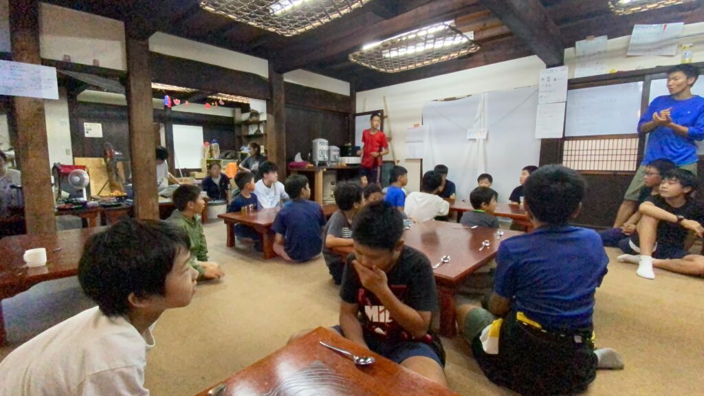 自己紹介からの夕ごはん 2021 8/15 summercamp 2021年8月15日 長期組も合流して、自己紹介。少し自由あそびからの夕ごはん。カレーライスとかぼちゃコロッケです。 summercamp よかったらシェアしてね! URLをコピーしました! URLをコピーしました! 夏の自然塾6スタート 今日の動画は日本一チームです この記事を書いた人 ゆうやリーダー 関連記事 予定通り帰ります 2024年11月4日 現地出発 2024年8月31日 現地出発 2024年8月24日 川あそび 2024年8月22日 現地出発 2024年8月20日 おはようございます 2024年8月18日 現地出発 2024年8月14日 川あそび 2024年8月12日