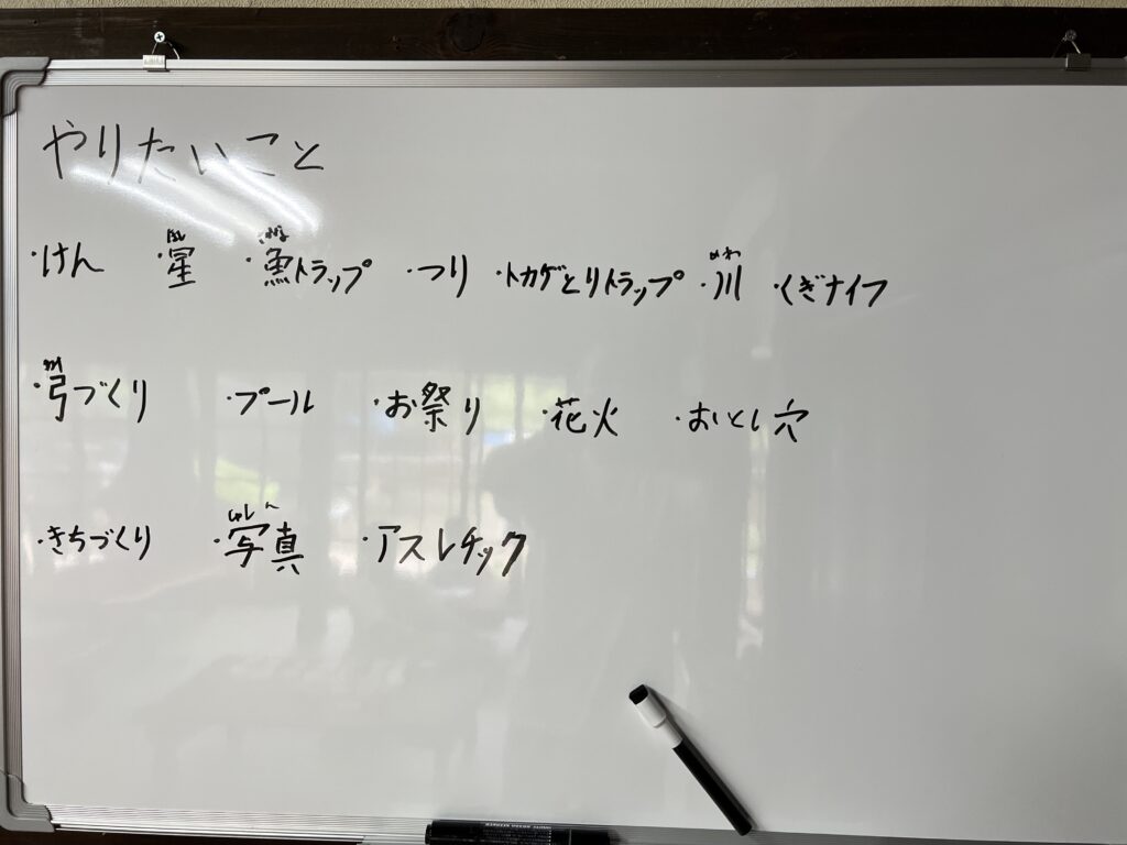 昨夜はビシッと生活を送るためのお話やこんな感じでのあそびができるよ、みんなはどんなことをやりたいですか?明日のやりたいことはなんですか?などたくさんの話し合いをしました。