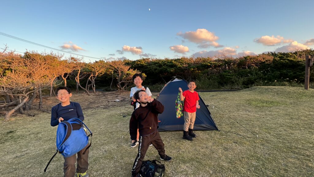 テント建てて
