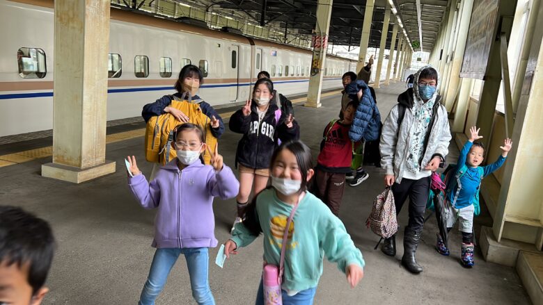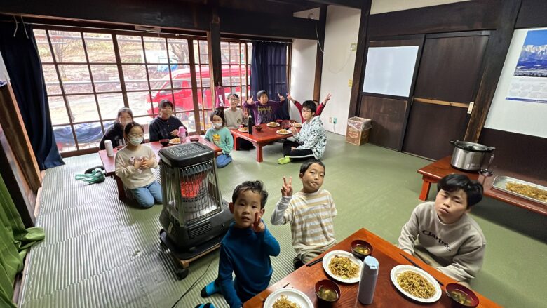 現地に到着し、お昼ごはんを食べ終えて、これから雪あそびに行ってきます。小雨は降っていますが。