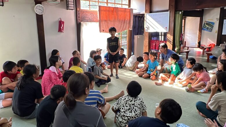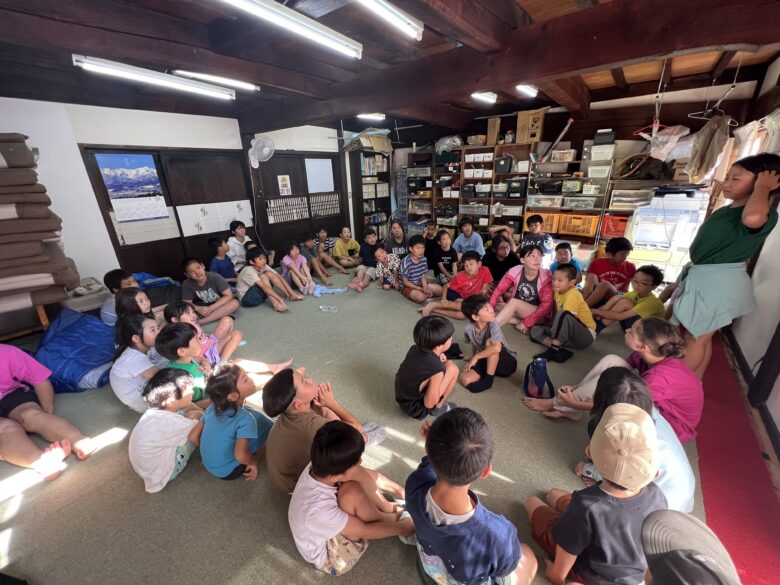 遅くなりましたが、無事現地到着し、自己紹介、自由あそび、お風呂、夕ご飯と続きます。