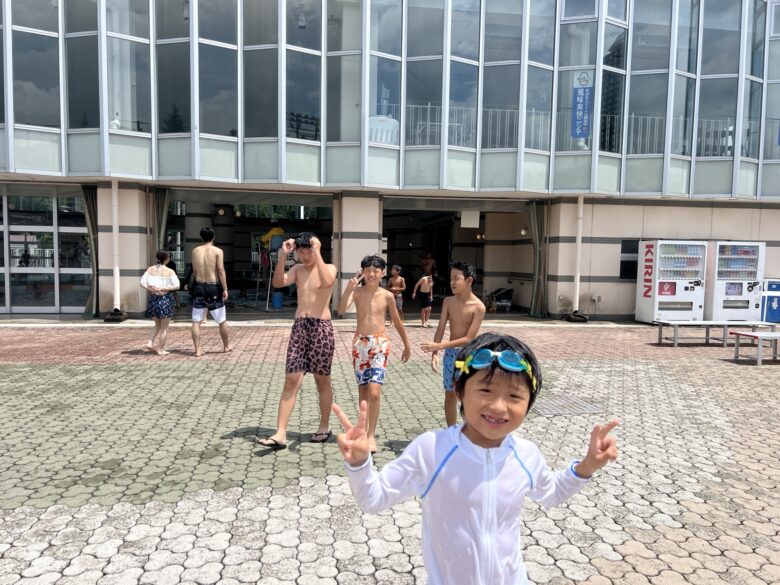 昨夜から、天気予報とにらめっこでしたが、予定通り屋外プールにやってきました。とりあえず、今のところ予報より暑く薄曇りの天気でプール日和です。さあ、これから5時間プールの始まりです。